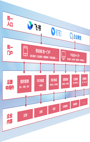 对协作平台提供支持服务,,,支持企业应用与协作平台对接,,包含组织同步、、、消息集成、、、、待办集成等。。支持目前主流的协作平台:钉钉、、、、企微和飞书。。。